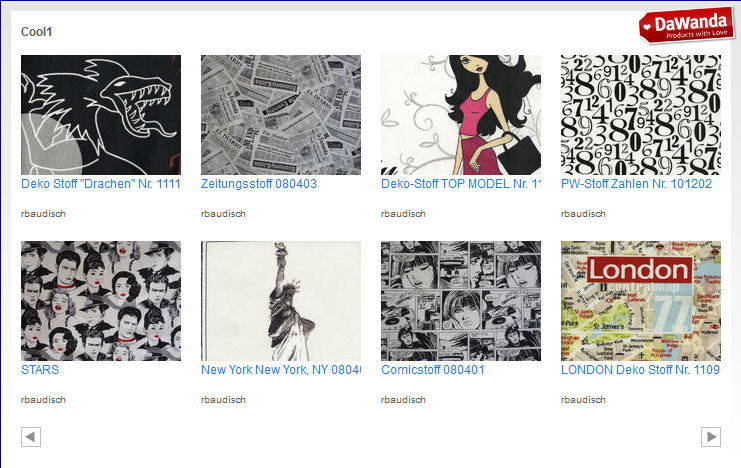 Zeitungsstoffen auch Stoffe mit Stars oder mit Elementen des Zeitgeistes auf Stoff.